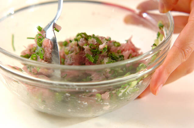 マグロと刻み細ネギを混ぜ合わせる。