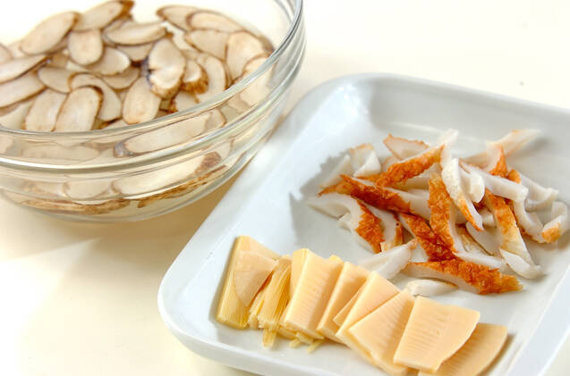 ゴボウはたわしできれいに水洗いし、斜め薄切りにして水に放ち、水気をきる。