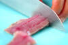 サンマは半身の長さを2~3等分に切ってハーブソルトを少し多めに振り、小麦粉をからめる。