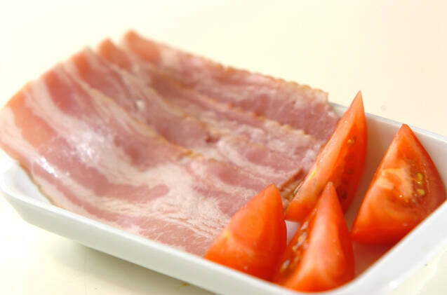 トマトはヘタを切り落とし、4つのくし切りにする。