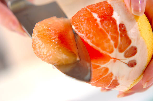 イチゴは水洗いして水気を拭き取り、ガクを切り落とす。グレープフルーツは薄皮をむき、大きい場合は食べやすい大きさに切る。ブロッコリーは食べやすい大きさに切る。カブは皮をむいて8~10個のくし切りにする。サラダ水菜は根元を切り落として、長さ4cmに切る。