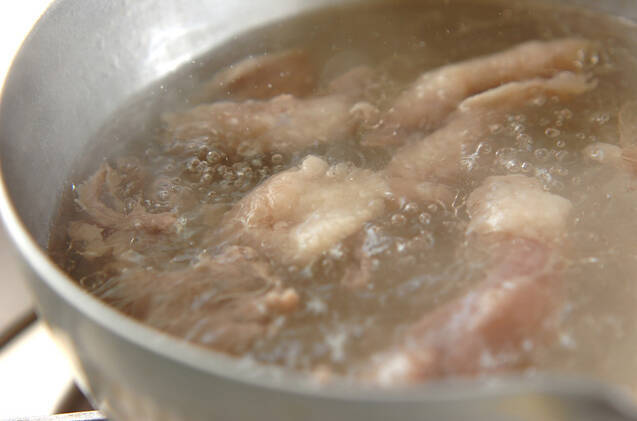 煮たってきたらアクを取り、フツフツくらいの火加減で30分くらい煮て、そのまま置く。