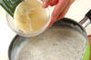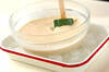 目の細かいこし器で(1)をボウルにこし、ボウルの底を氷水にあてて粗熱を取る。