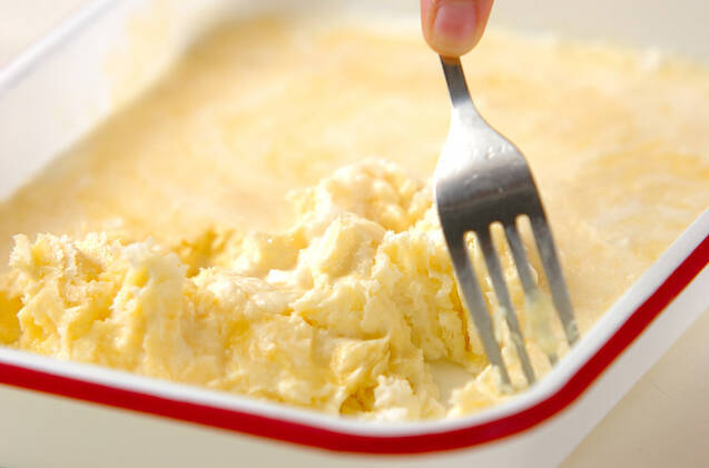 さらにフォークで崩して混ぜ合わせ、よく冷やした器に盛り、ミントの葉を飾る。