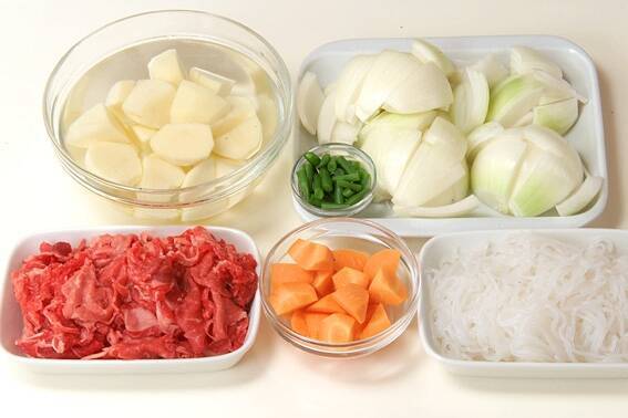 ジャガイモは皮をむき、大きめの一口大に切り、10分位水にさらす。