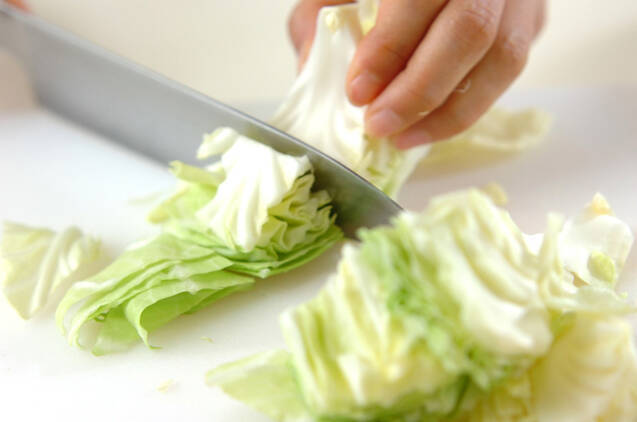 キャベツはザク切りにする。