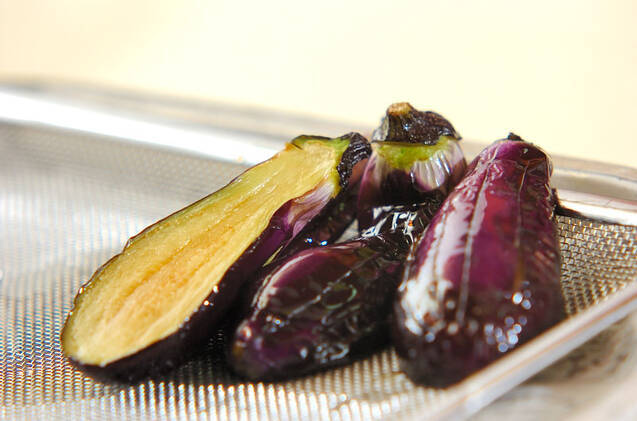 (1)を170℃の揚げ油でしんなりするまで揚げる。