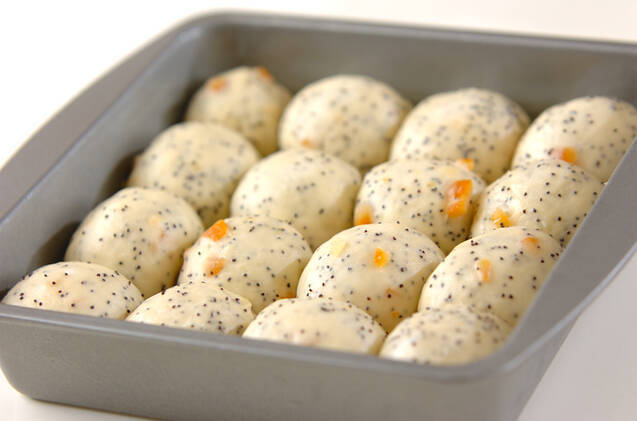成形をする。再び表面を張らせるようにきれいに丸めた生地を、分量外のバターを塗った型に入れてラップで覆い、その上に固く絞った布巾掛けて暖かい所で二次発酵する。(30分)