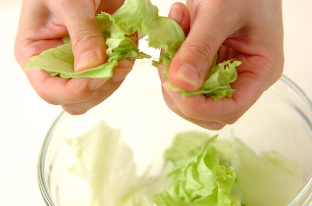 牛ひき肉とゴボウのカレー風味そぼろ レタス巻きごはん