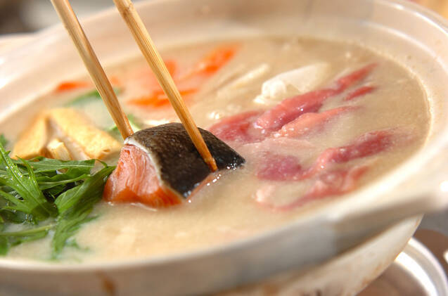 フツフツしてくれば薄口しょうゆ、塩で味を調え、具を入れる。刻みセリを入れた取り鉢に、火の通った具からスープと一緒に取り、お好みで一味または七味唐辛子を振っていただきます。
