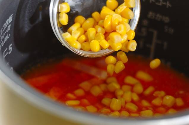 炊飯器にパセリ以外の材料を加え、スイッチを入れる。