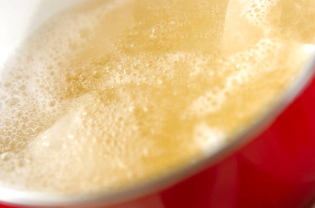 鍋にだし汁、カブを加え強火にかけ、煮立ったら火を弱めてカブが少し透き通って柔らかくなるまで煮る。