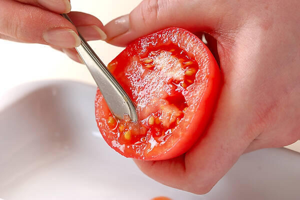 <ふるふるサルサディップ>を作る。耐熱ボウルに<寒天液>の材料を入れてよく混ぜ合わせ、電子レンジで3分加熱する。トマトはヘタをくり抜き、フォークで刺して火で炙り、皮が破れたら皮をむく。横半分に切って種を取り出し、水分を拭き取って5mm角に刻む。玉ネギは細かいみじん切りにする。<ふるふるサルサディップ>の全ての材料を混ぜ合わせて、<寒天液>に混ぜ合わせ、冷やして固まったらザックリ混ぜ合わせる。