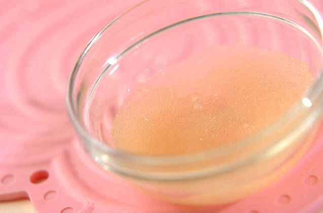 水に粉ゼラチンを振り入れ、ふやかしておく。