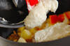全体に混ざったら強火にかけ、木ベラなどで絶えず混ぜながら加熱する。トロミがついたら弱火にし、さらに混ぜながら2~3分煮る。