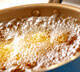 1のエビに<衣>を通し、揚げ油に入れる。下まで落ち、ひと呼吸おいてすぐに浮き上がってくるくらい(170℃)の油でサックリ揚げ油を切る。2度揚げするとよりサクッと揚がります。