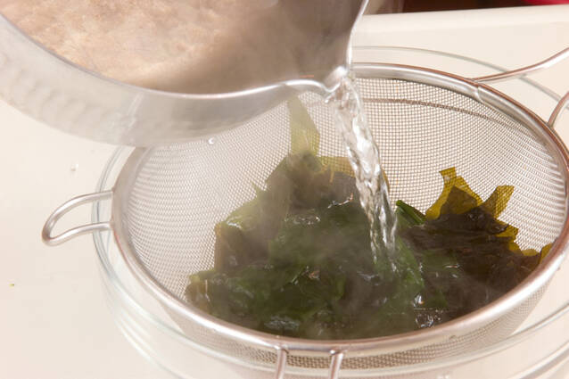 生ワカメはよく洗い、食べやすい大きさに切って熱湯をかけ、水に取って粗熱が取れれば水気を切る。