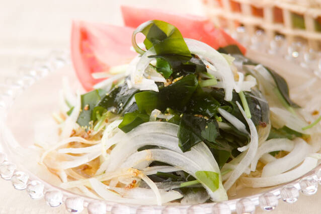 ボウルに水気を切った材料を混ぜ合わせ、器に盛りつける。