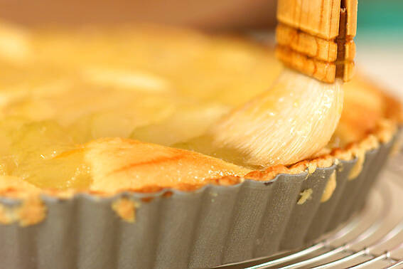 170℃に予熱したオーブンで30~40分焼く。熱いうちにアプリコットジャムをぬって照りをだす。冷めたら型から出し、全体に粉砂糖を振る。