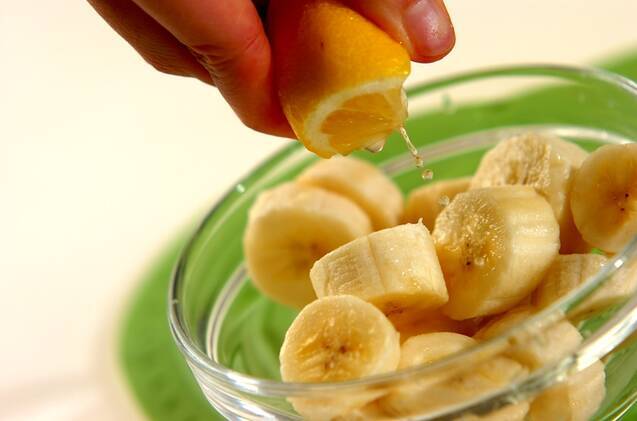 レモンを絞ってレモン汁をバナナにかける。