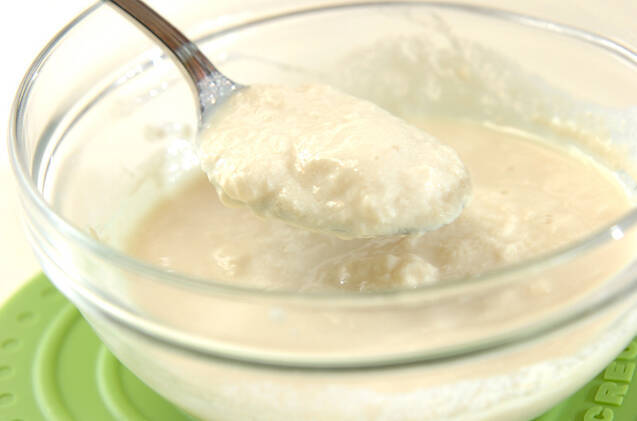 <豆乳ヨーグルト>を作る。清潔な容器にリジュベラック50mlと無調整豆乳200mlを入れて軽くかき混ぜ、ホコリよけに蓋をして常温で8~12時間おく。冬場なら1~2日かかる。容器を軽くゆすり、全体がかたまっていることを確認できたらでき上がり。