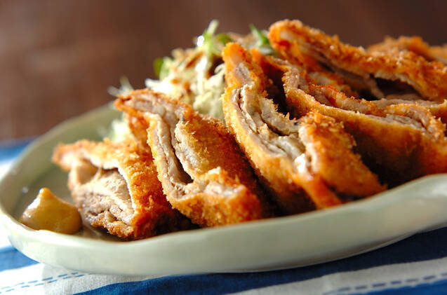 サクッと揚がったトンカツは格別なおいしさ。ソースをつけなくてもおいしい理由は、ニンニクの香りが広がるみそのおかげ。