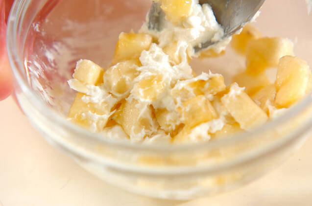 バナナは7~8mm角に切り、カッテージチーズを加えて混ぜ合わせる。