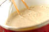 (2)に(1)を注ぎ入れ、水でもどしたクコの実を散らす。
