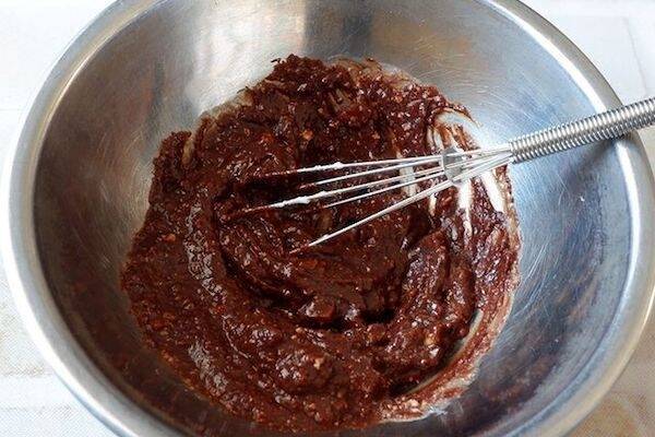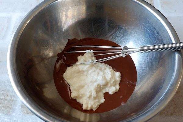 板チョコレートが溶けたら豆腐、イチジク、お好みでラム酒を入れ混ぜ合わせる。