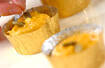 マフィン型に<生地>を入れ、カボチャの種をのせて180℃に予熱しておいたオーブンで30~40分焼く。