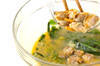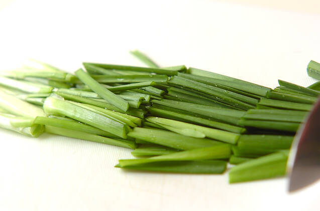 アサリは分量外の塩水で殻と殻ををこすり合わせるように洗い、ザルに上げる。ニンニクは皮をむき、縦半分に切って芽を取り除き、みじん切りにする。ショウガは皮をむき、みじん切りにする。ニラはサッと水洗いして水気をしっかり切り、根元を切り落として3cm幅に切り、サラダ油少々を熱したフライパンでしんなりするまで炒めて取り出す。