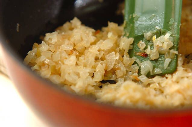 玉ネギはバターを熱したフライパンに入れ、中火で炒めて塩コショウを振り、冷ましておく。