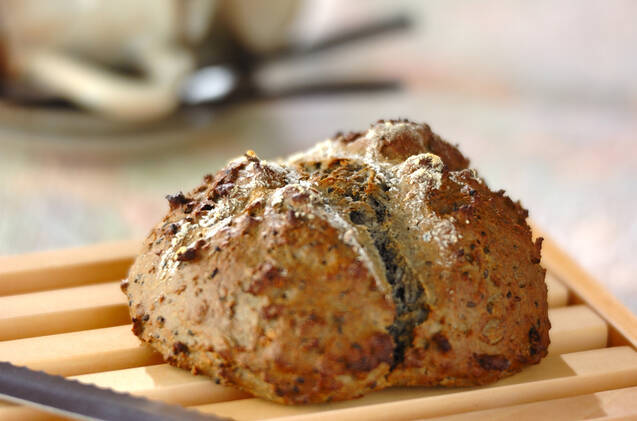 3の生地に軽く分量外の打ち粉を付けたナイフで約1cm深さの十文字の切り目を入れ、190℃に予熱しておいたオーブンで25~30分焼く。焼き上がったらケーキクーラーにのせて粗熱を取る。ここではガスオーブンを使用しています。オーブンにより、温度差や焼き時間には違いがあるので、ふだんからお家のオーブンの癖を知っておくことをおすすめします。目安として小型の電気オーブンの場合、レシピより10~20℃高い設定にして下さい。