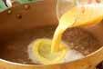 フライパンにバター5g、サラダ油少々を中火にかけバターが溶ければ卵を一気に流し込み、全体に広がれば弱火にする。