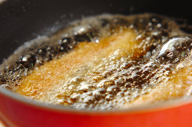 続けて(1)の油に鮭を入れて色よく揚げ、油をきる。器にキャベツ、(1)と共に盛り合わせ、レモン、ウスターソースを添える。