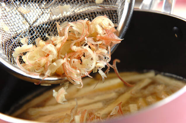 鍋にだし汁を入れて強火にかけ、煮たったら油揚げを加える。再び煮たったらみそを溶き入れ、ミョウガを加えて器に注ぐ。