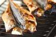 焼き網に薄くサラダ油を塗り、皮を上にして並べ入れ、表面に焼き色がつくくらいまで焼く。(弱めの中火で7~8分焼く)