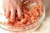 サヤインゲンを加え、サッと煮て、<水溶き片栗>を加え、トロミをつけ、器に盛り合わせて煮汁をかけ針ショウガを添える。