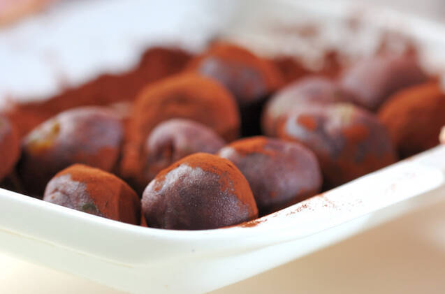バットにココアを広げ、(1)を転がしながら全体にまぶし、器に盛る。