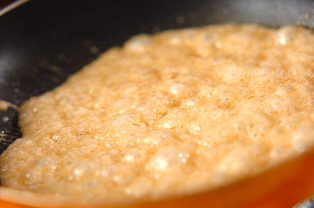 バターが溶け出したらフライパンを揺すってむらなく加熱し、周りが色づいてきたらさらに揺すりながらお好みの焦がし加減にする。