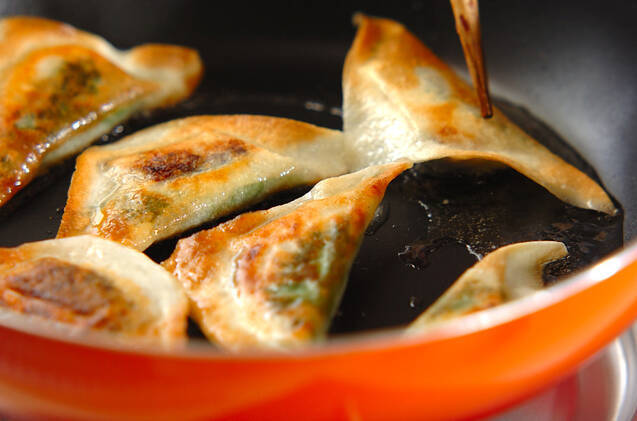 サラダ油を熱したフライパンで(1)を揚げ焼きにし、キャベツをしいた器に盛る。