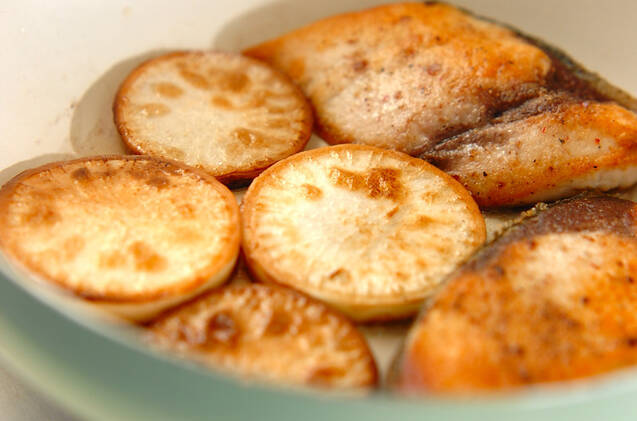 フライパンにサラダ油を中火で熱し、ブリとカブの両面においしそうな焼き色がつくまで焼く。