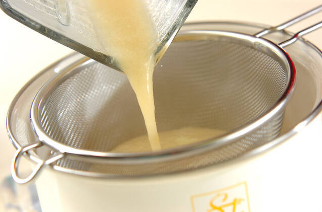 (1)をミキサーでかくはんし、網に通して鍋に戻し、中火にかける。煮たってきたら牛乳、クリームコーンを加え、煮たつ直前で火を止める。塩コショウで味を調え、器に注いでクルトン、ドライパセリを散らす。