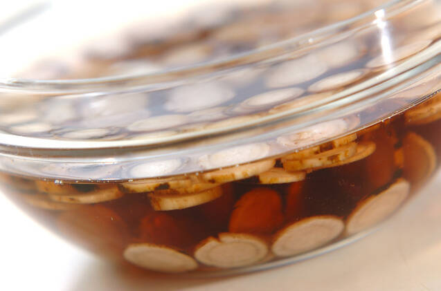 ゴボウは薄い輪切りにして水に放ち、変色したらザルに上げて水気をきる。ベーコンは幅5mmに切る。<調味料>の材料を合わせておく。