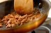 フライパンにツナ、<調味料>の材料を入れて中火で熱し、汁気がなくなるまで炒める。