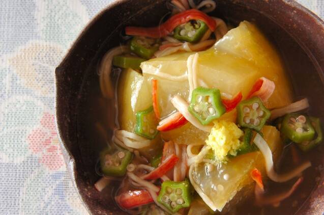 隠し包丁を入れるひと手間で、冬瓜にだしが染みておいしくなります。