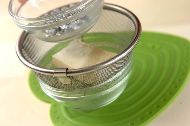 ニンジンは皮ごとよく洗い、すりおろす。木綿豆腐はキッチンペーパーなどで包み、重しをして水気をしっかりきる。
