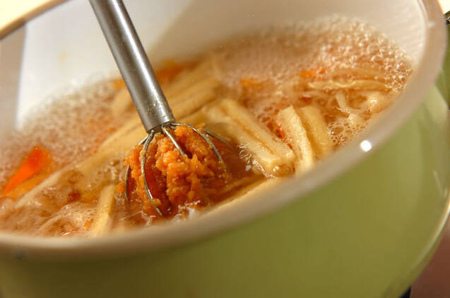 再び煮たったらみそを溶き入れ、器に注ぐ。