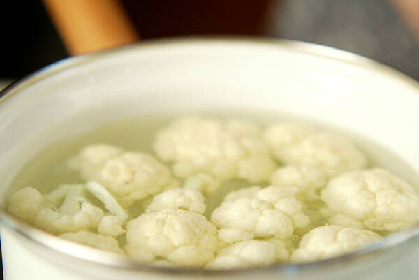 カリフラワーは小房に分け、塩とレモン汁を入れた熱湯でゆでる。