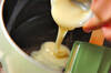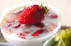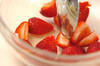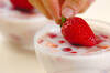 水でぬらした容器に流し入れ、冷蔵庫で冷やしかためる。かたまったら、飾り用のイチゴを飾る。